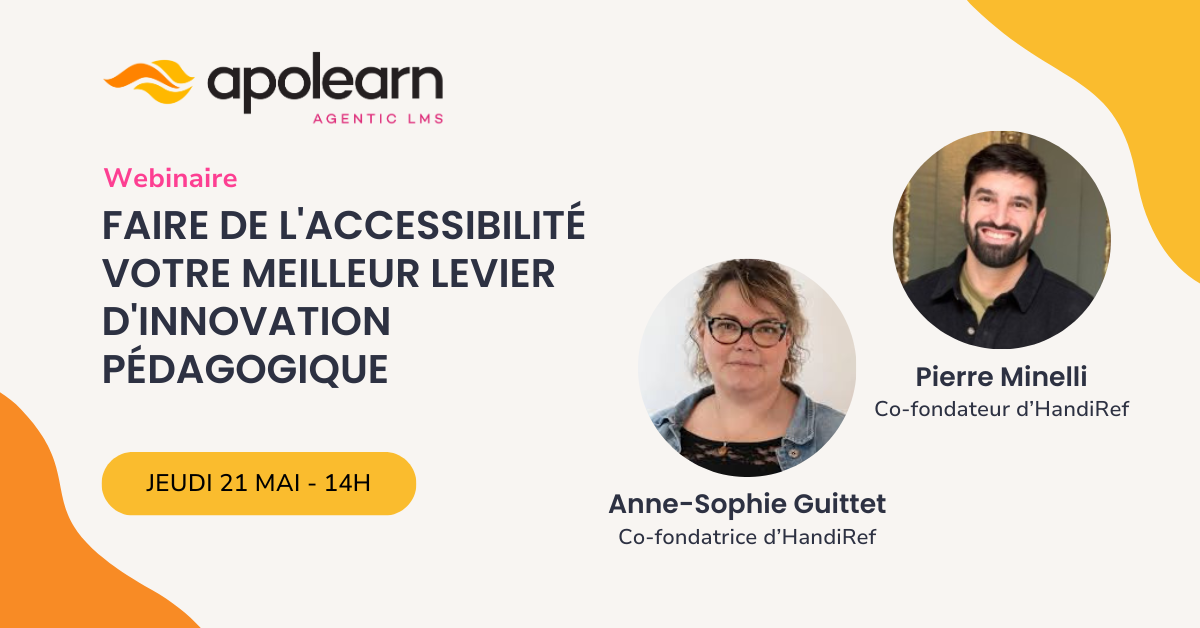 Hier, le Learning Experience (LX) nous a permis de percevoir ce que l'apprenant traverse. Aujourd’hui, le Learning Experience Design (LXD) nous permet de créer des parcours centrés sur l'humain. Et demain, le Learning Experience Design Inclusive (LXD Inclusive) améliore radicalement l'expérience d’apprentissage de tous, en concevant pour les apprenants extraordinaires. WEBINAIRE EXCLUSIF - le jeudi 21 mai à 14h Objectif du webinaire … |